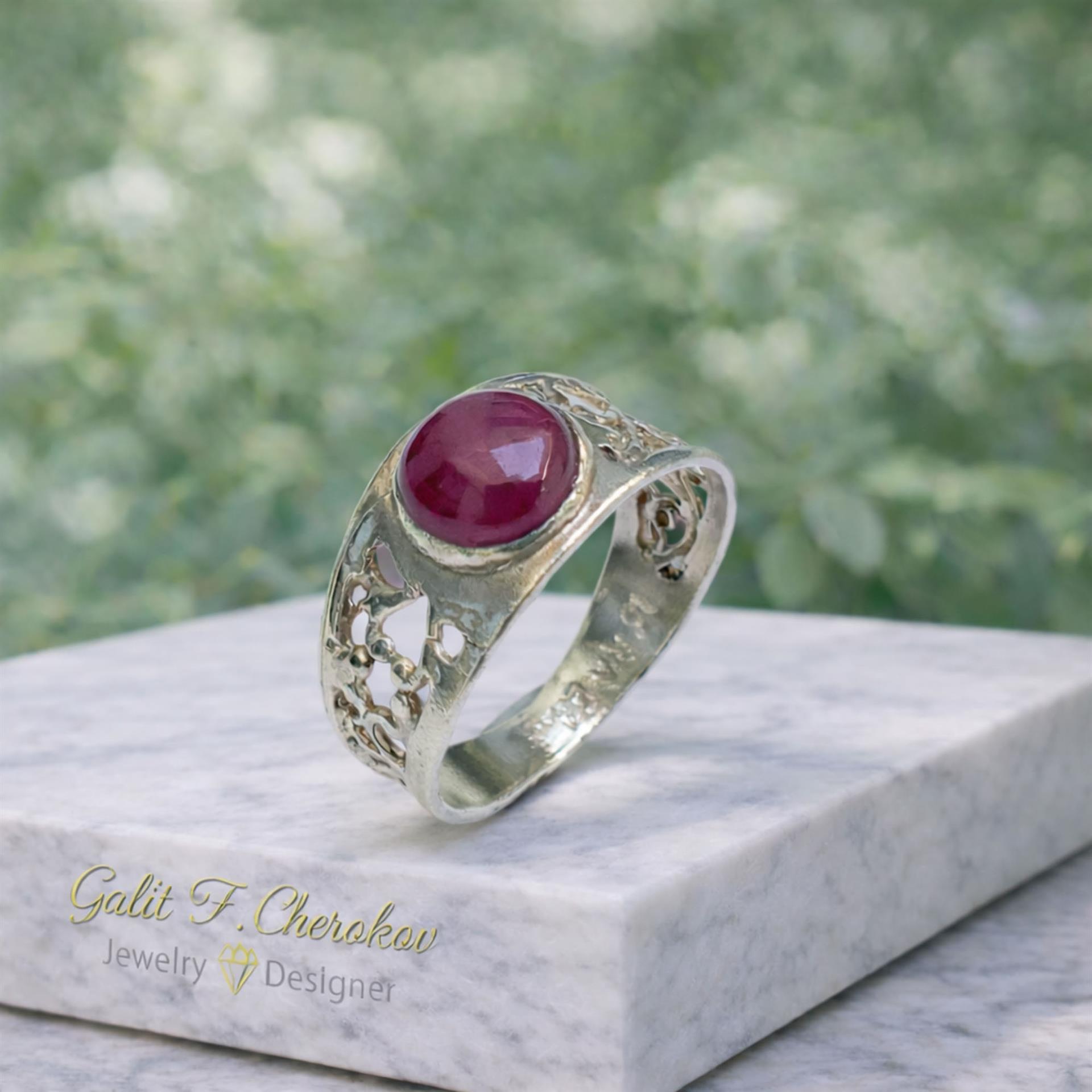 טבעת כסף פיליגרן מעודנת משובצת אבן רובי אדום היא תכשיט מהמם שיתן לך מראה מושלם ויוקרתי. הטבעת עשויה מכסף איכותי ומעוצבת בצורה פיליגרן מושקעת ומפוארת. האבן המרכזית של הטבעת היא אבן רובי אדום מובהקת ומפוארת, המשתלבת בצורה מושלמת עם הכסף המבריק. הטבעת מגיעה במגוון גדלים כדי להתאים לכל אישה וסגנון. תן לעצמך או לאהובתך מתנה מושלמת עם טבעת כסף פיליגרן מעודנת משובצת אבן רובי אדום. הטבעת היא הוספה מושלמת לכל אופנה ותכשיטים, ותביא ניצוץ ויוקרה לכל מראה.