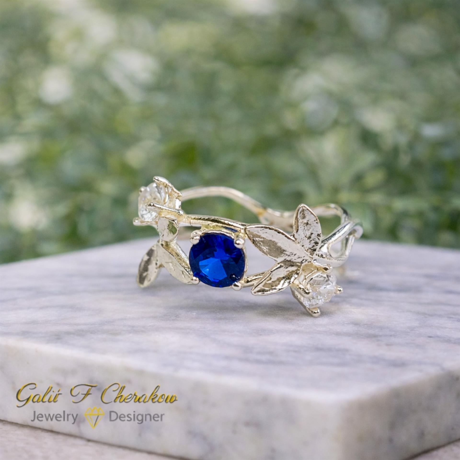 הטבעת הזו היא שילוב מושלם של יופי קלאסי וזוהר מודרני. הכסף המבריק משמש כרקע נהדר לאבני הזירקון הצלולות והבוהקות. אבן הזירקון בכחול ספיר עמוק מעניקה נופך של מלכותיות ויוקרה, בעוד זירקוני היהלום הצלולים מוסיפים ברק מסנוור. העיצוב העדין הופך אותה למושלמת ללבישה יומיומית או כתוספת אלגנטית לאירועים מיוחדים.