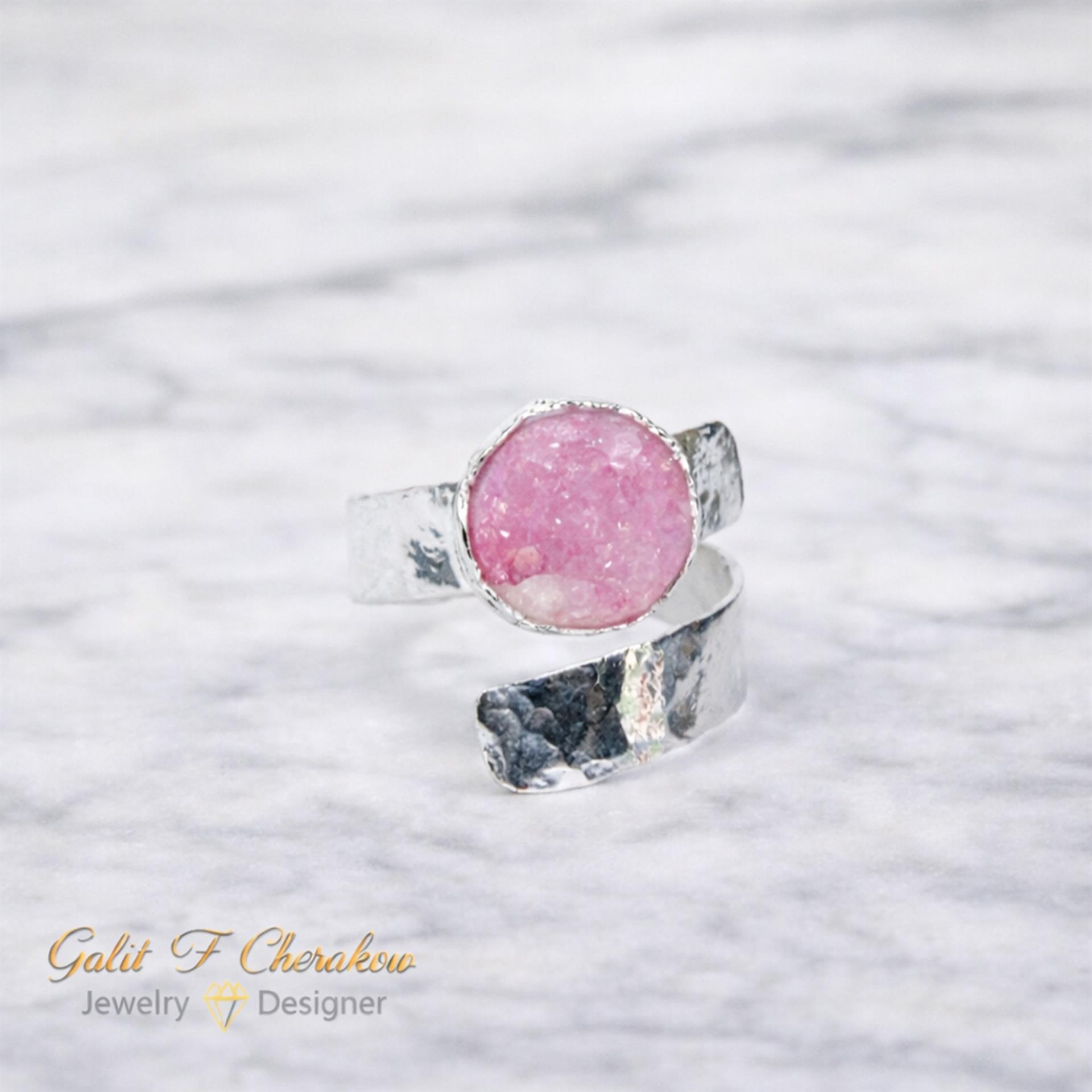 עמוד הבית | חנות | טבעת כסף 925 ספירלה ואבן ורודה
