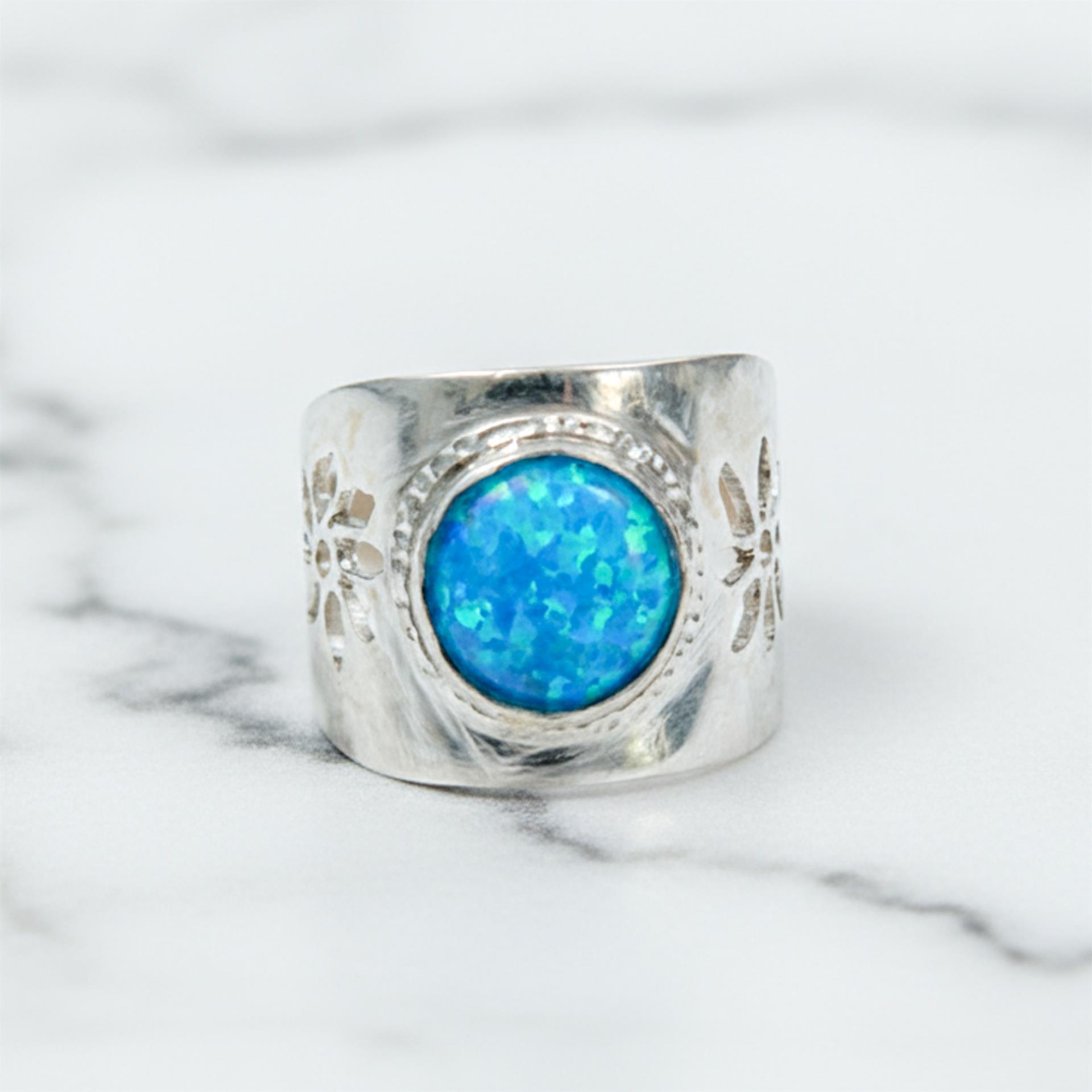 טבעת כסף 925 רחבה משובצת אבן אופל תכלת עבודת יד היא תכשיט מהמם שישדרג כל לוק בצורה מושלמת. הטבעת עשויה מכסף 925 מלא המבטיח עמידות וברק לאורך זמן. היא מעוטרת באבן אופל תכלת, המוסיפה יופי וסטייל לטבעת. העיצוב הרחב של הטבעת מעניק לה מראה מרשים ומקורי, והיא עבודת יד אמנותית המעטירה אותה באיכות ויוקרה. טבעת זו היא בחירה מושלמת כמתנה לאהובים וכמגוון עיצובי תכשיטים מעולים. הוספו את הטבעת המרהיבה הזו לאוסף התכשיטים שלכם ותהיו ייחודיים בכל אירוע.