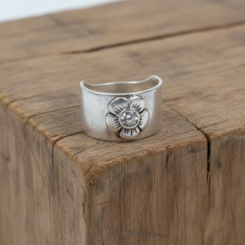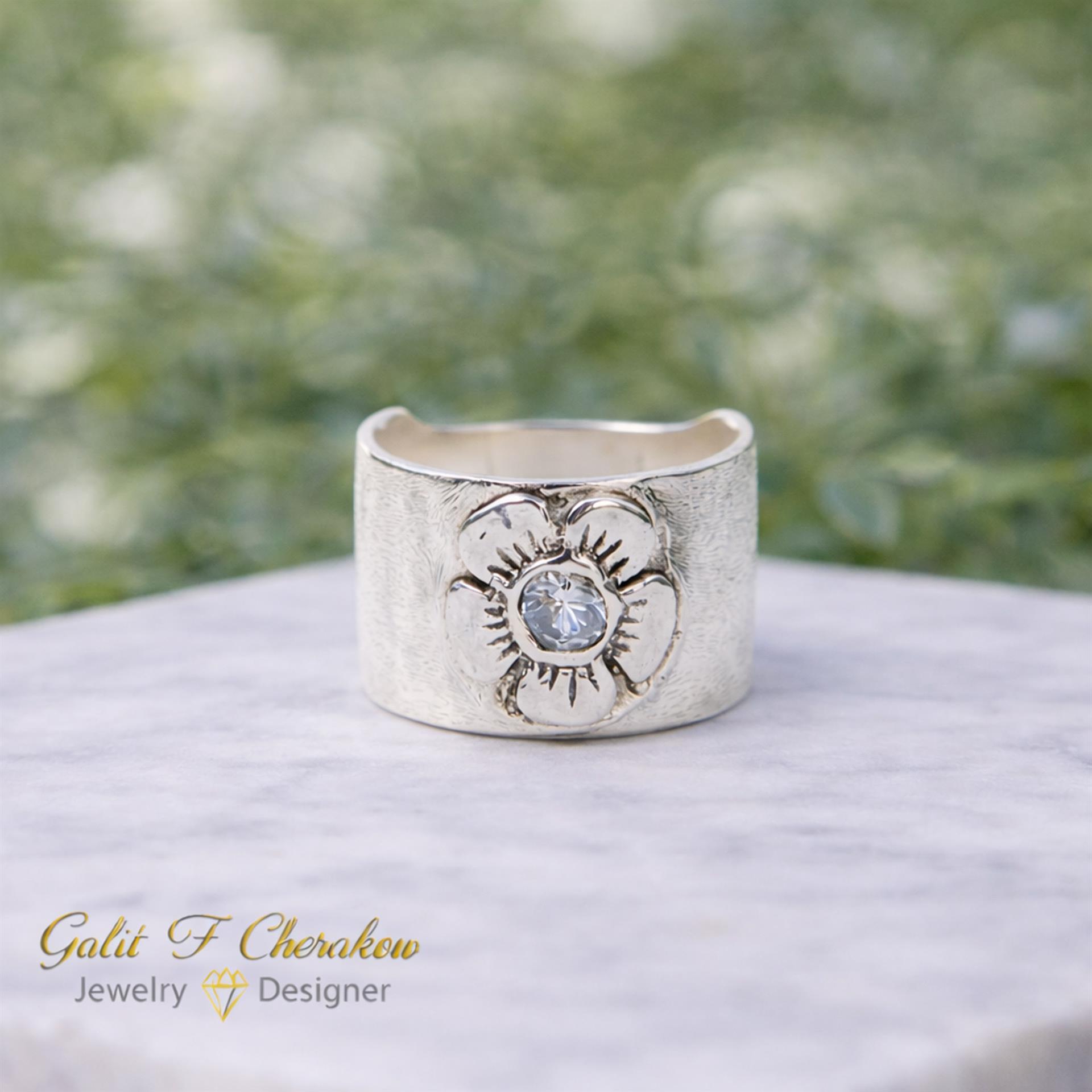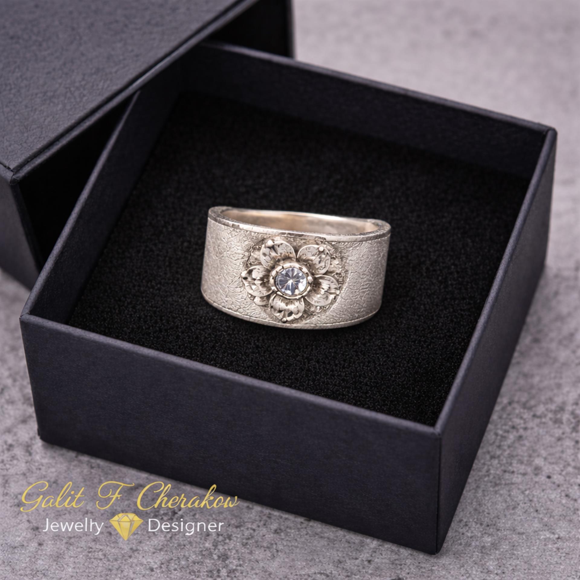טבעת כסף 925 רחבה משובצת זירקון על פרח עדין היא פריט תכשיט מדהים שישדרג את כל הופעת היד שלך. עשויה מכסף איכותי ברמה של 925, הטבעת מעניקה מראה מודרני ואופנתי. הזירקון המשובץ בטבעת מוסיף ברק ויוקרה מרהיבה. הטבעת מעוצבת עם פרח עדין, המעניק לה מראה רומנטי ונשי. היא מתאימה לשימוש יומיומי או לאירועים מיוחדים ותהיה מתנה מושלמת לאהובים ויקרים. עם טבעת כסף 925 רחבה משובצת זירקון על פרח עדין, תוכלו להוסיף אלגנטיות וסטייל לכל לוק שתבחרו. תפנו לקנות עכשיו ותיהנו ממוצר איכותי ומרהיב.