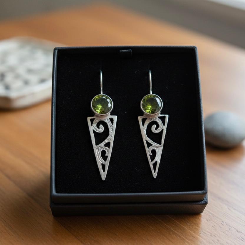עגילים כסף 925 עבודת יד משובצים אבן ירוקה זירקון הם תכשיט מרהיב שיתן לך מראה מושלם ומושך את העין. העגילים עשויים מכסף איכותי בעל חומר יציבות מעולה, 925, המבטיח שהם יחזיקו לאורך זמן. כל עגיל מעוצב בעבודת יד יצירתית ומקפידה על פרטים מדויקים. העגילים משובצים באבן ירוקה זירקון, המספקת ברק וזוהר מדהימים. הם מתאימים לשימוש יומיומי או לאירועים מיוחדים ויתאימו לכל סגנון ומראה. העגילים האלגנטיים והייחודיים הללו הם מתנה מושלמת לעצמך או לאדם יקר בחייך. תוסיפי נצנוץ ויופי לכל הופעה עם עגילים אלו.