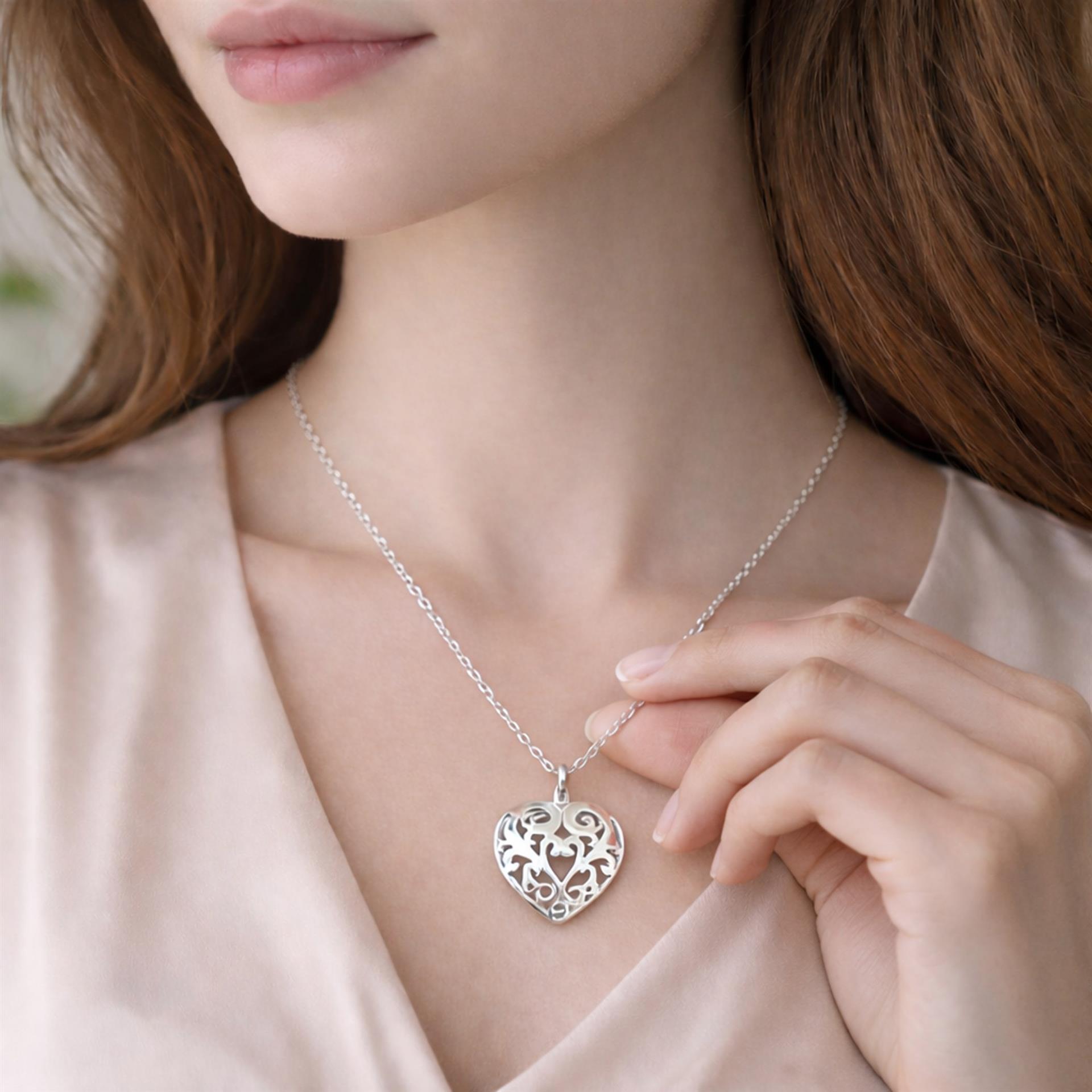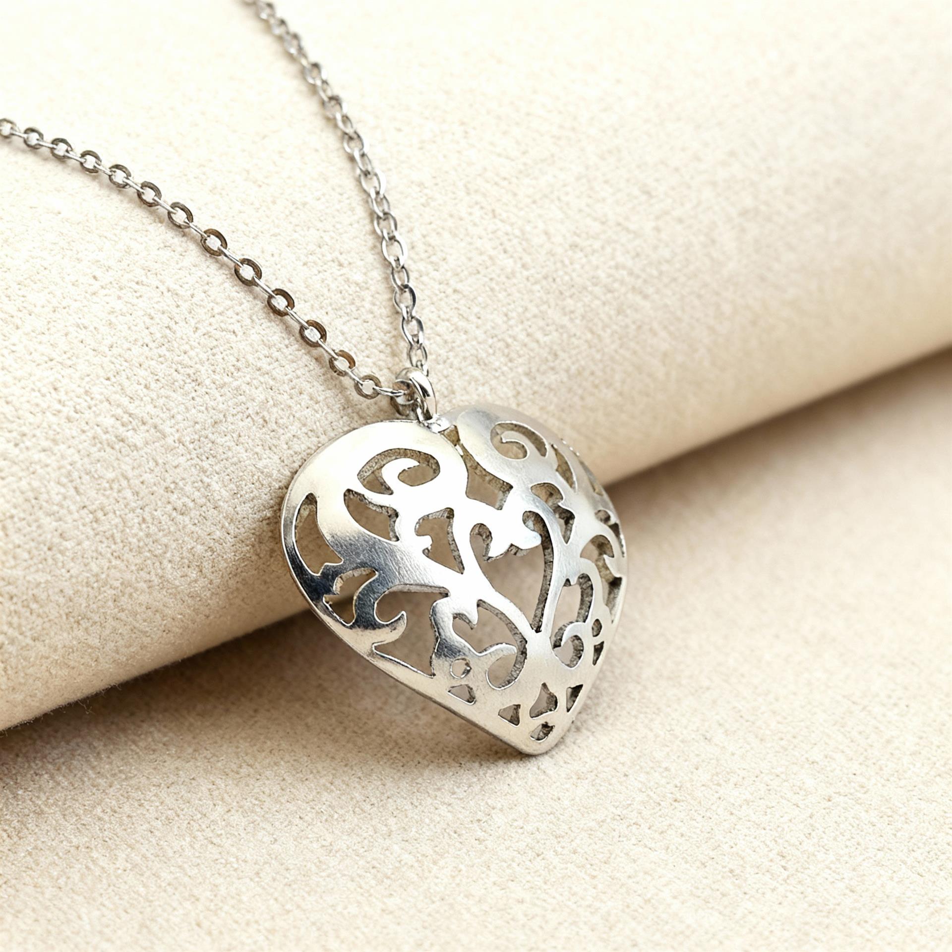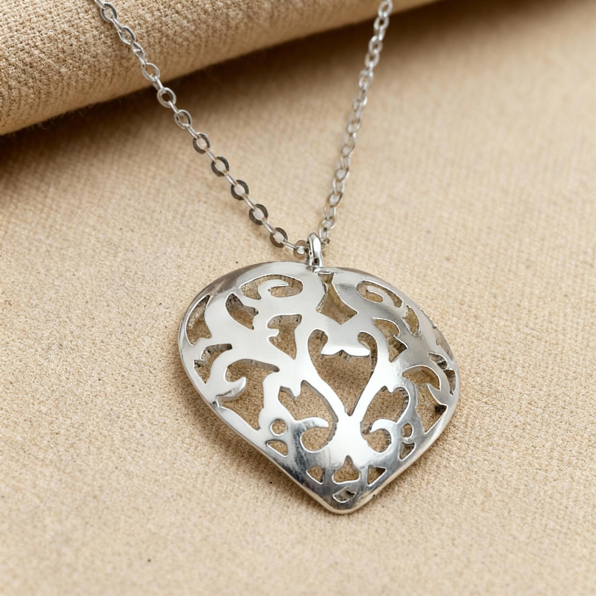 שרשרת כסף 925 בעבודת יד, עם תליון לב פתוח בעיטור אורגני ועדין.