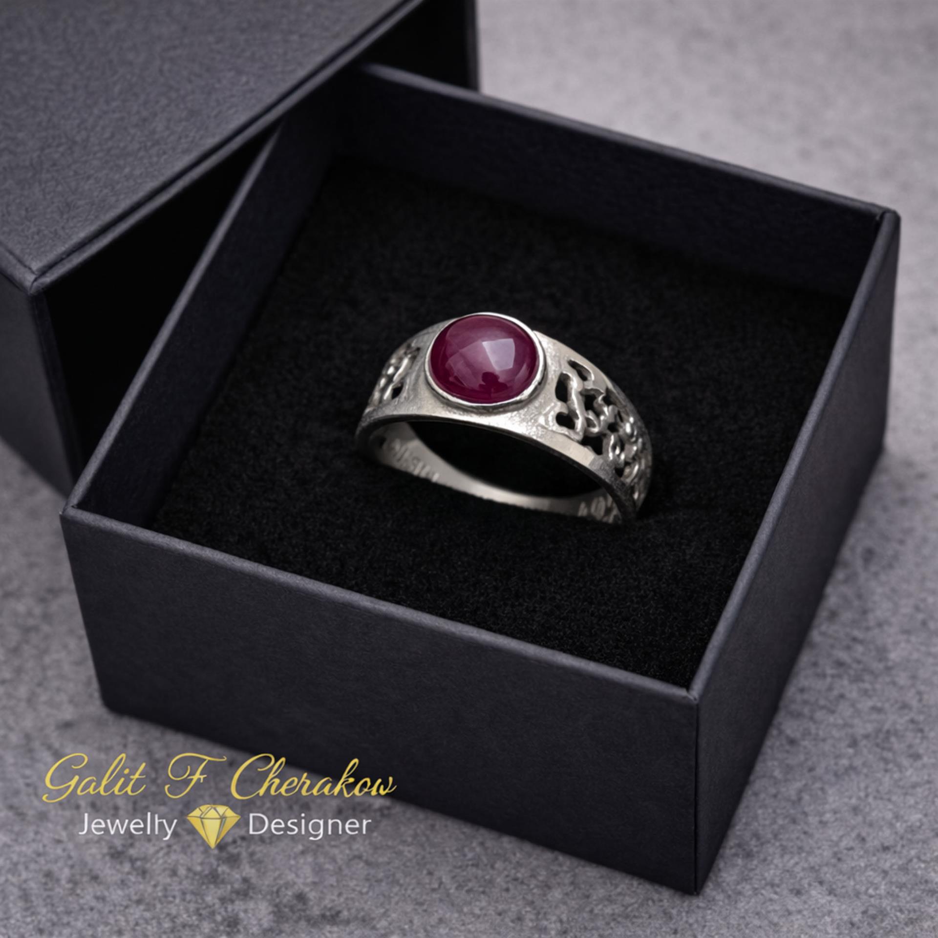 טבעת כסף פיליגרן מעודנת משובצת אבן רובי אדום היא תכשיט מהמם שיתן לך מראה מושלם ויוקרתי. הטבעת עשויה מכסף איכותי ומעוצבת בצורה פיליגרן מושקעת ומפוארת. האבן המרכזית של הטבעת היא אבן רובי אדום מובהקת ומפוארת, המשתלבת בצורה מושלמת עם הכסף המבריק. הטבעת מגיעה במגוון גדלים כדי להתאים לכל אישה וסגנון. תן לעצמך או לאהובתך מתנה מושלמת עם טבעת כסף פיליגרן מעודנת משובצת אבן רובי אדום. הטבעת היא הוספה מושלמת לכל אופנה ותכשיטים, ותביא ניצוץ ויוקרה לכל מראה.