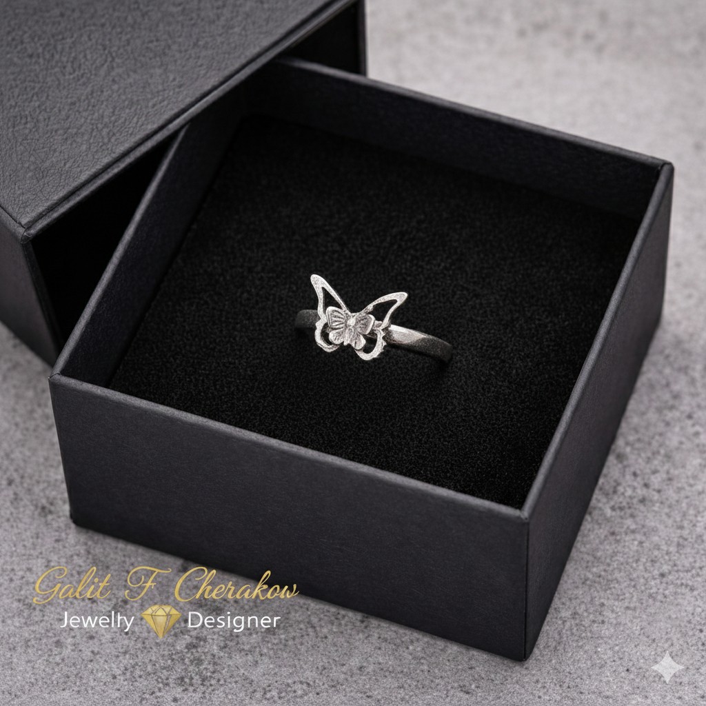 טבעת כסף עדינה פרפר היא תכשיט מרהיב שמוסיף לך יופי וסטייל מרשים. הטבעת עשויה מכסף 925 איכותי, המבטיח חוזק והחזקה לאורך זמן. עיצוב הפרפר המדהים מוסיף רקע של קסם ואופטימיות לטבעת, והעבודה המדהימה בעבודת יד מספקת גימור מושלם. חווי את האיכות המדהימה של תכשיט זה, המשלב בין אומנות בעבודת יד ואיכות חומרים גבוהה. טבעת זו היא בחירה מושלמת לכל אירוע מיוחד או פשוט כדי להתענג על תכשיט מרהיב ומושך. תוסף מרהיב לסטייל שלך ותגרום לכל מבט להתפעל. הזמן עכשיו את טבעת הכסף העדינה פרפר ותיהני מתכשיט מושלם.