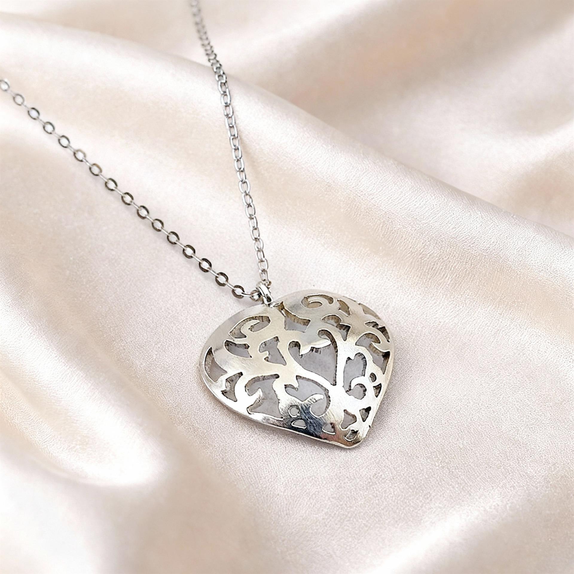 שרשרת כסף 925 בעבודת יד, עם תליון לב פתוח בעיטור אורגני ועדין.