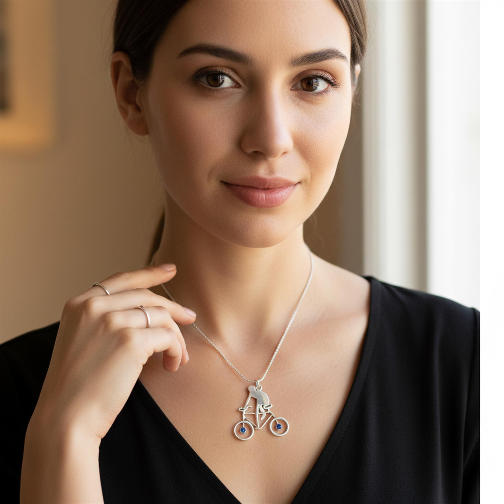 השרשרת הזו היא התכשיט המושלם עבור רוכבים, חובבי אופניים, או כל מי שמעריך את החופש והתשוקה שברכיבה. התליון המעוצב משדר את הדינמיות והאנרגיה של האופניים, בעוד שאבן הלאפיס לזולי, הידועה בגווניה הכחולים העמוקים והפיגמנטים הזהובים, מוסיפה נגיעה של חוכמה, שלווה וחיבור לטבע. זוהי דרך אלגנטית ואישית להביע אהבה לספורט ולחיים.